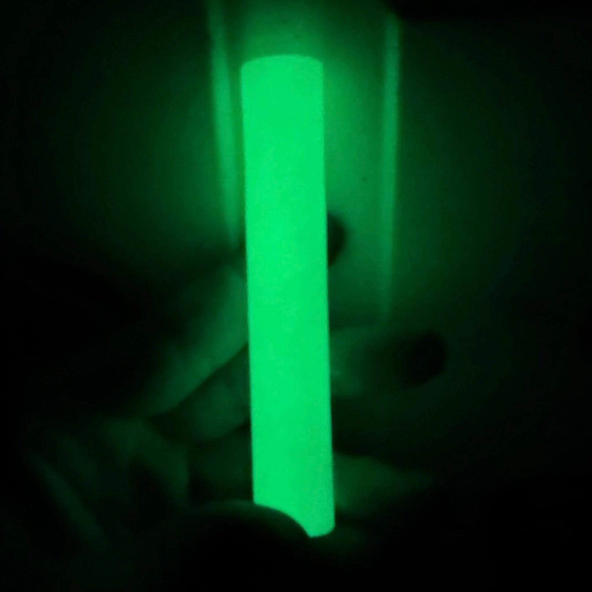 A beautiful shimmery green, That also pops a bright green glow in the dark.